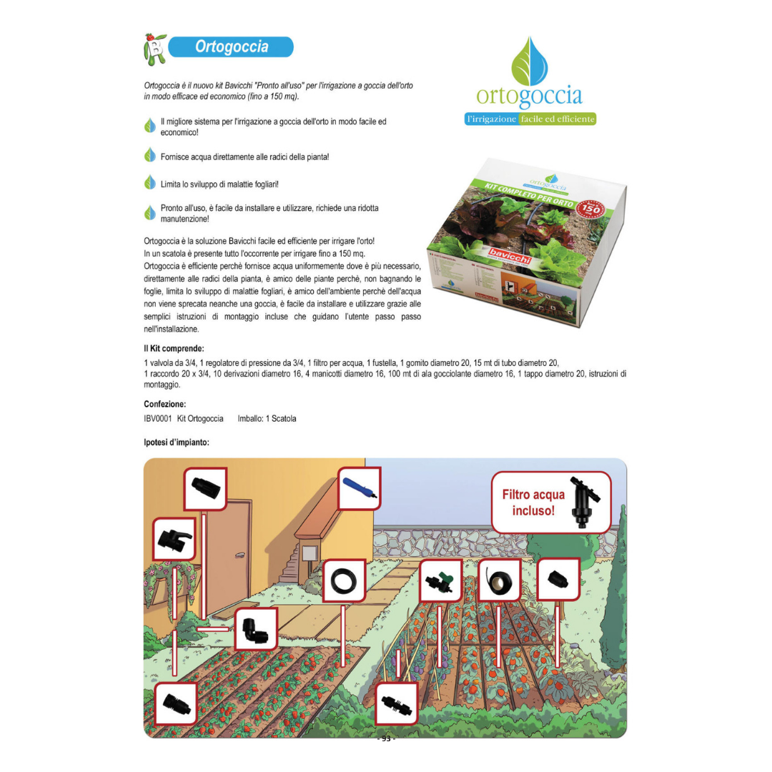 Ortogoccia è il nuovo sistema Bavicchi pronto all'uso per l'irrigazione a goccia dell'orto in modo efficace ed economico (fino a 150mq)