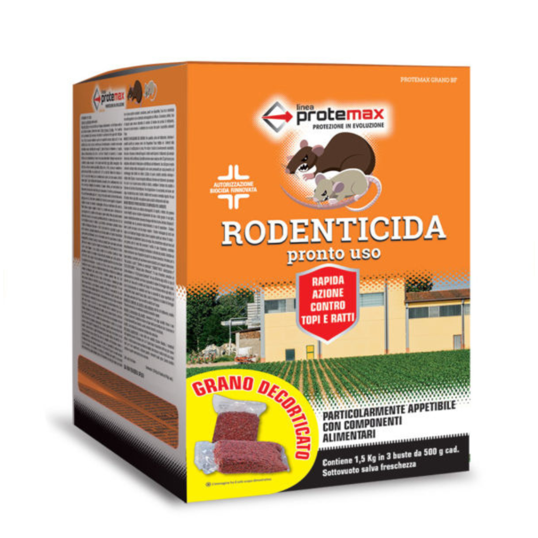 Caratteristiche: esca in grano decorticata, aromatizzata e lavorata con speciale procedimento per aumentare la sua efficacia verso topi e ratti.